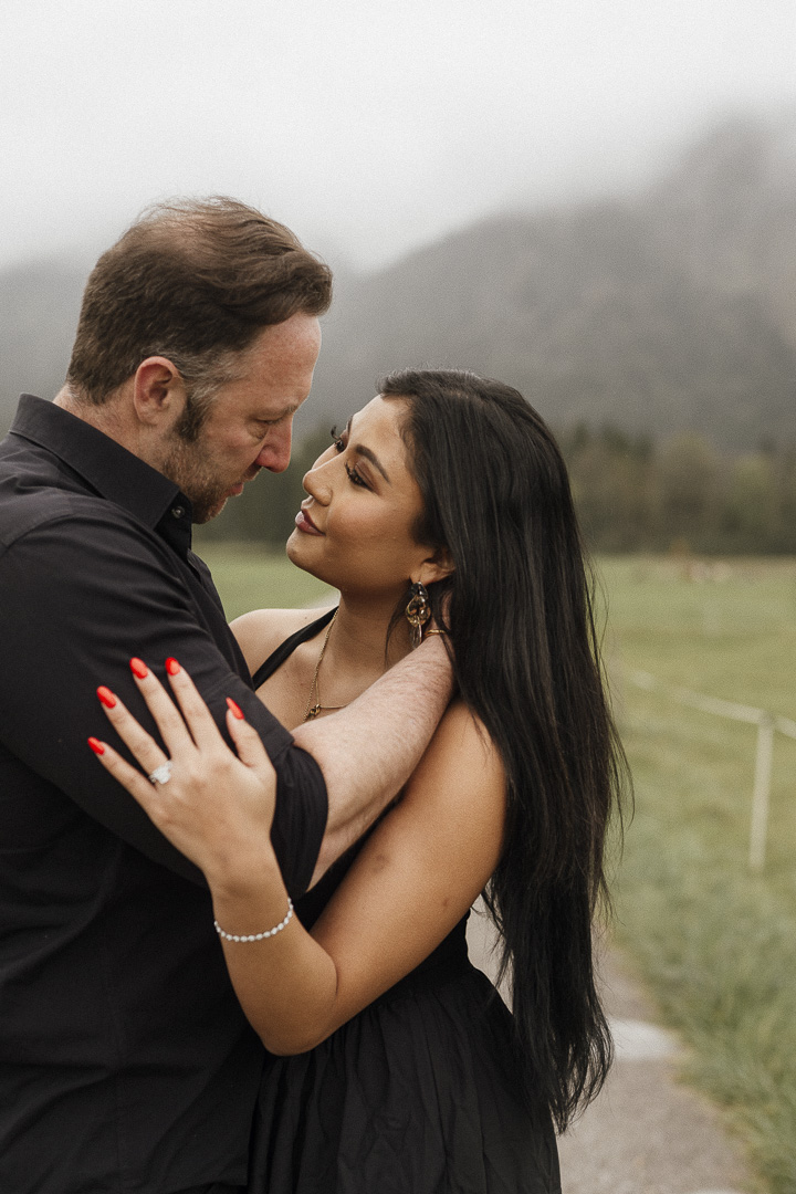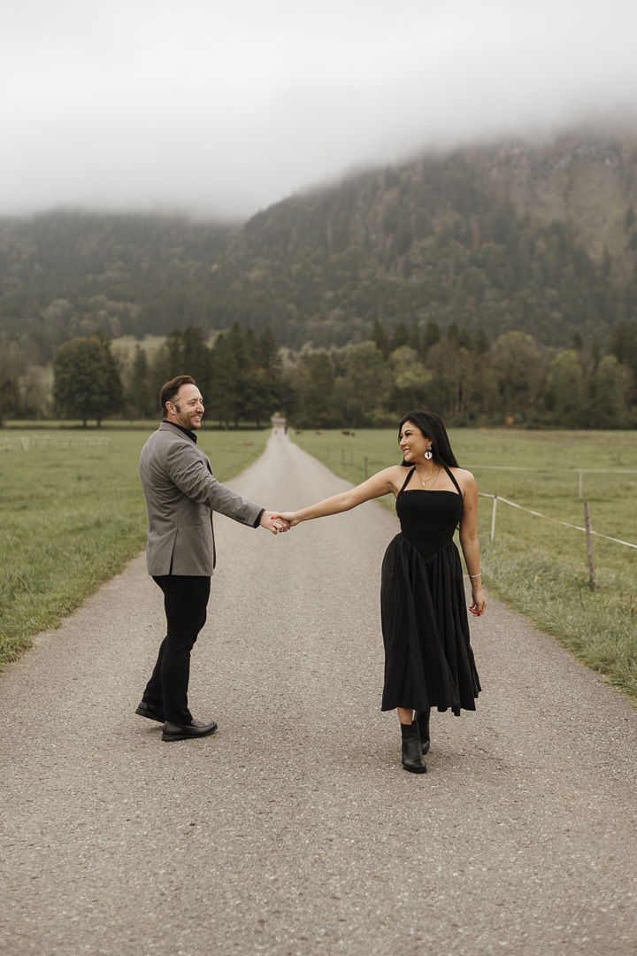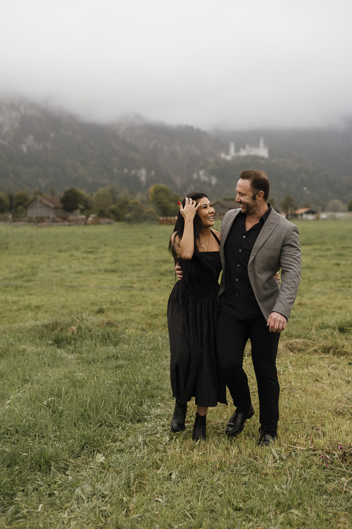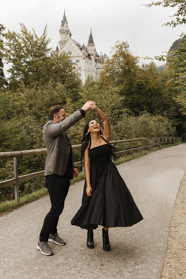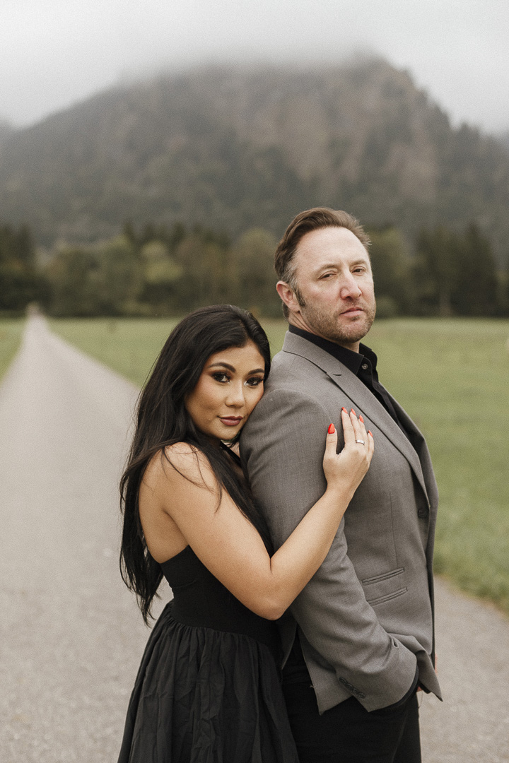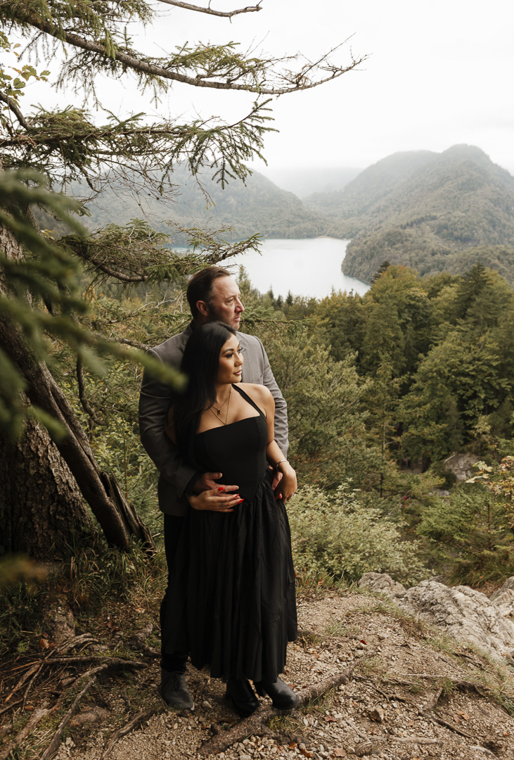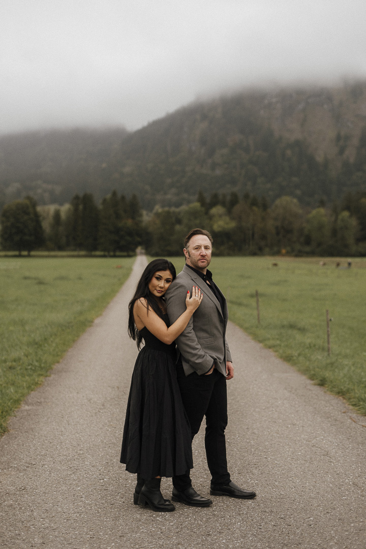 I lead couples to a spot that gives the most dramatic view—castle, valley, and that classic Bavarian “how is this real?” background. I choose angles that feel iconic but also allow a little privacy.