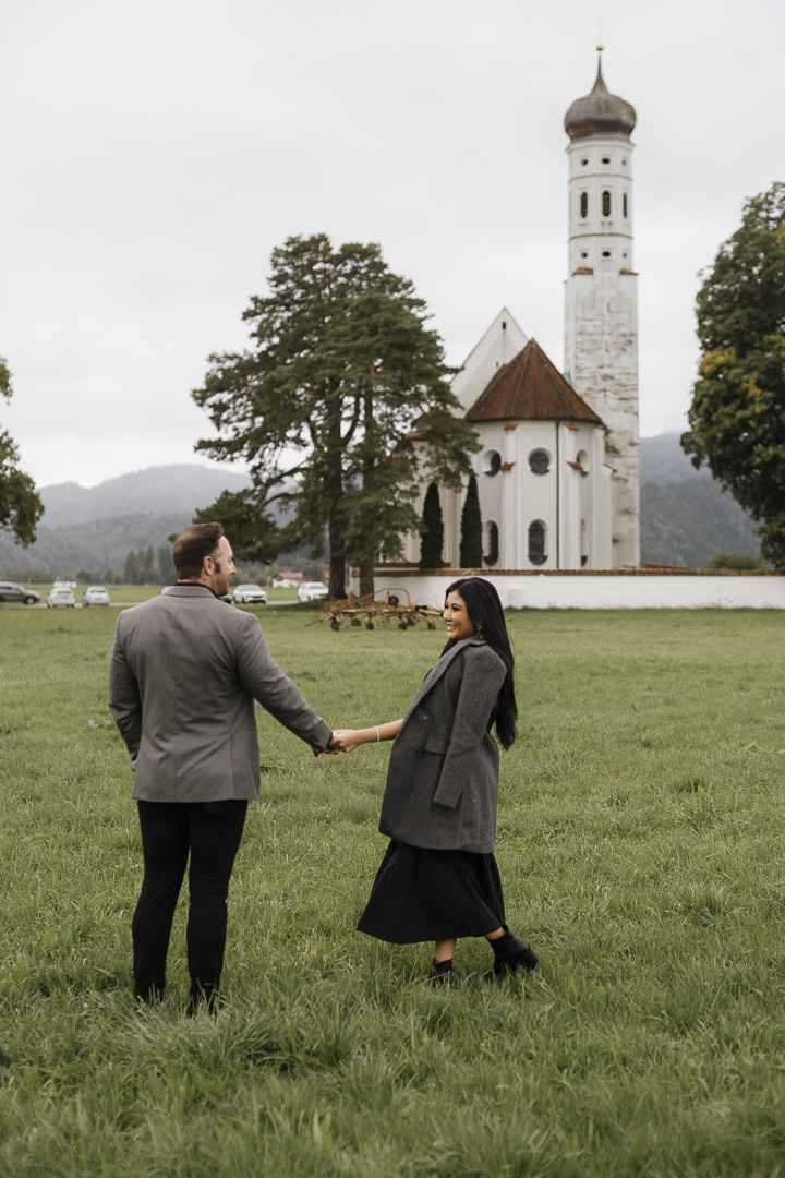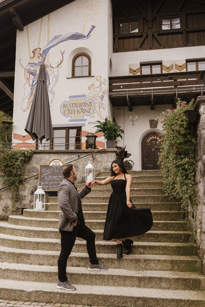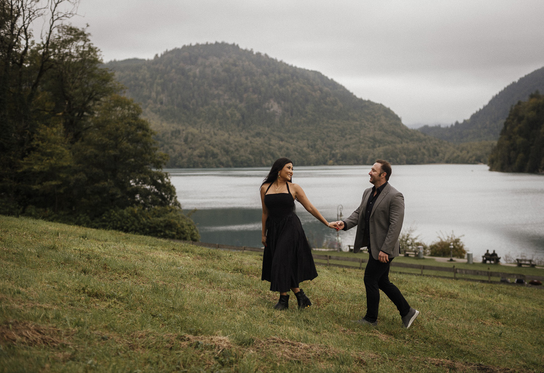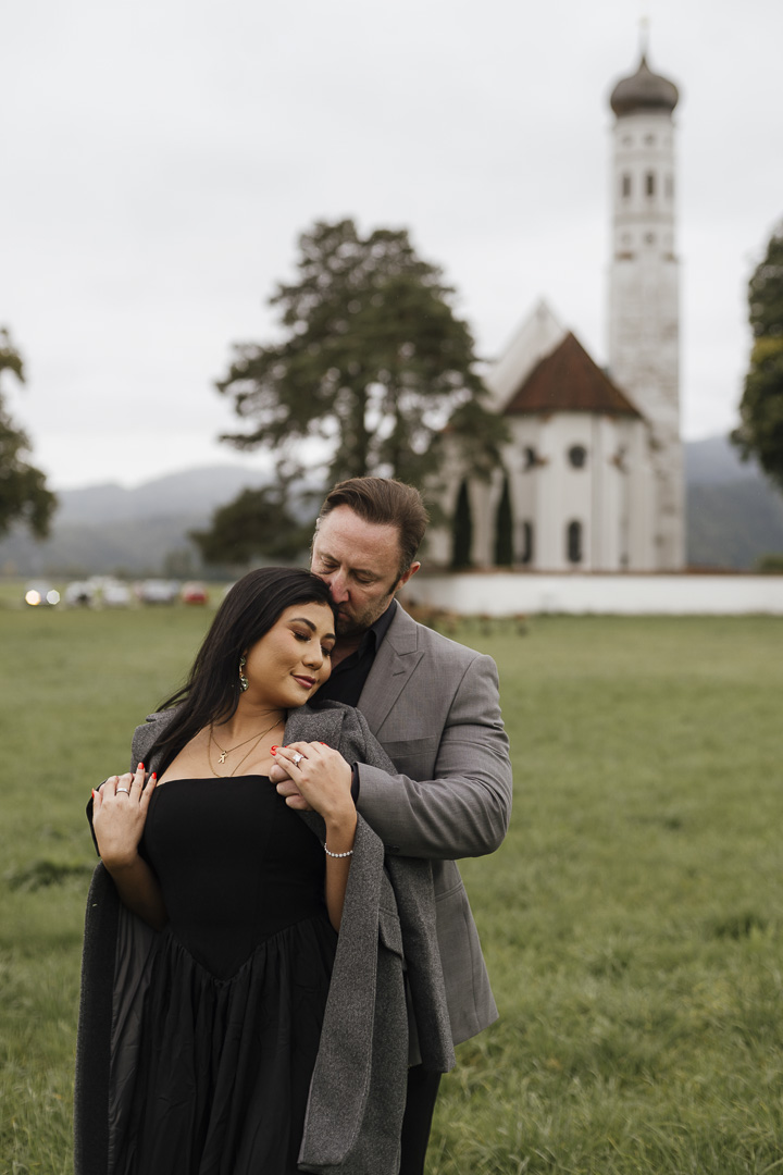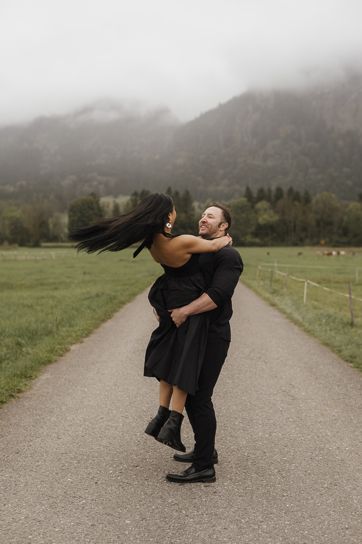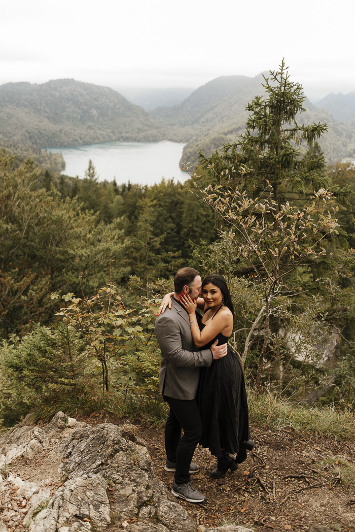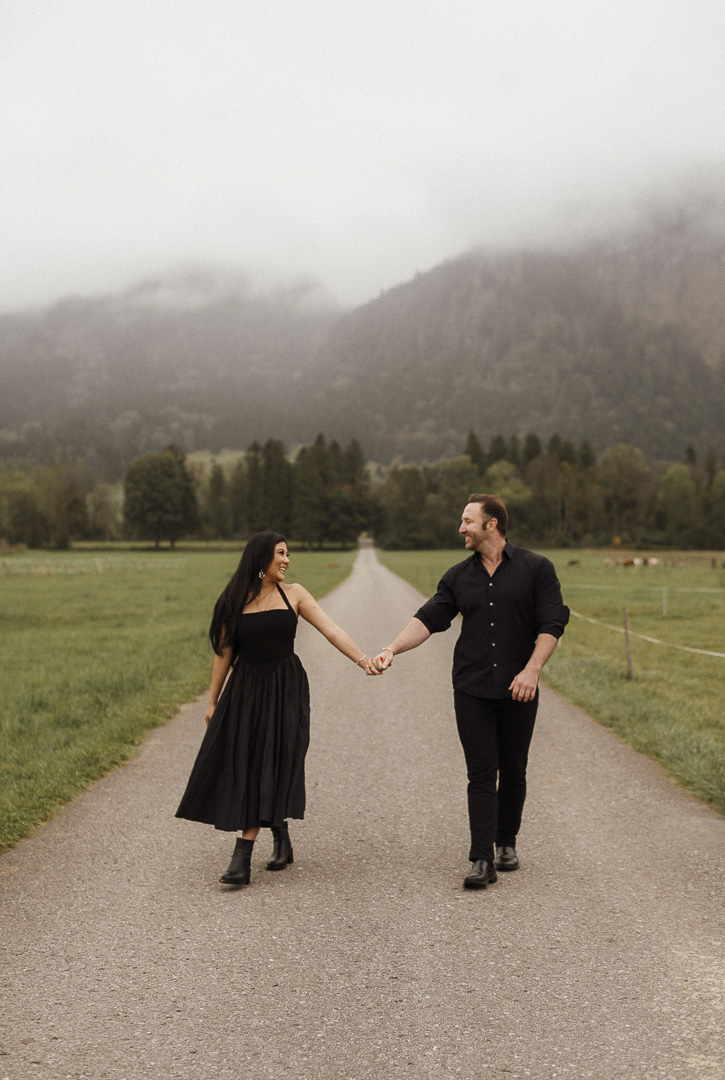 I lead couples to a spot that gives the most dramatic view—castle, valley, and that classic Bavarian “how is this real?” background. I choose angles that feel iconic but also allow a little privacy.