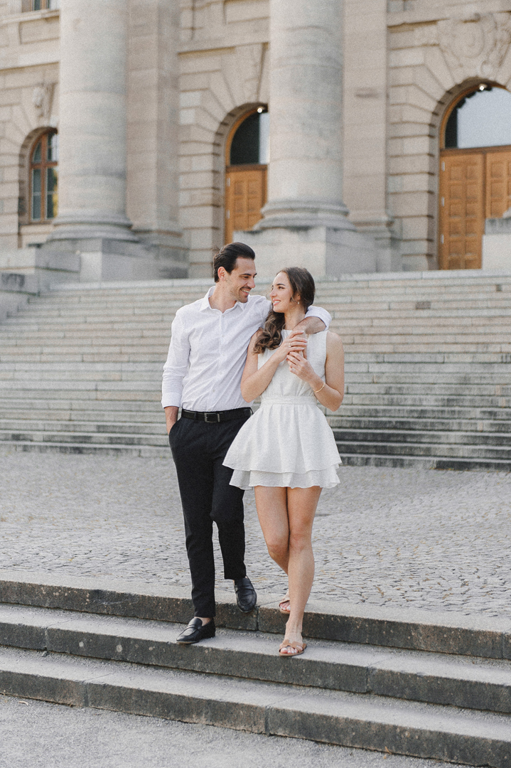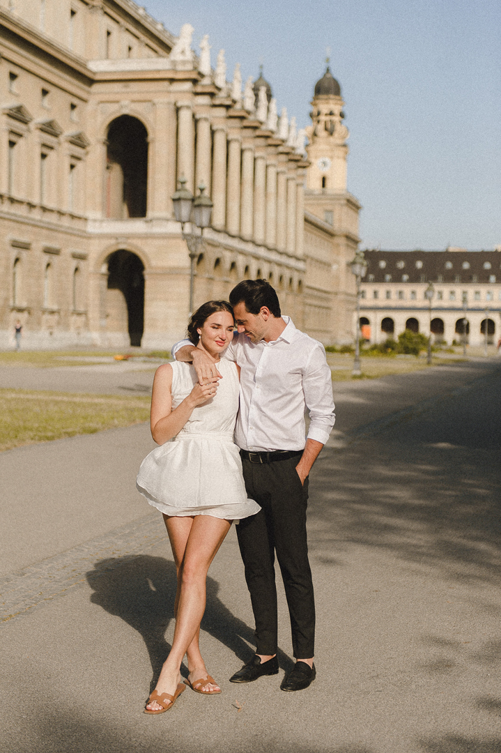 Munich brought the sunshine, these two gorgeous Aussies brought the giggles, and I brought the camera. After his fairytale proposal at Neuschwanstein Castle (casually setting the romance bar at “Disney-level”), we celebrated with a relaxed summer couple session in the city—golden light, cobblestone strolls, and just enough breeze to nail the “movie hair.”